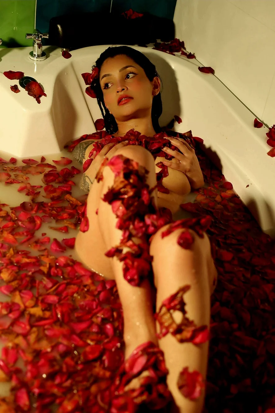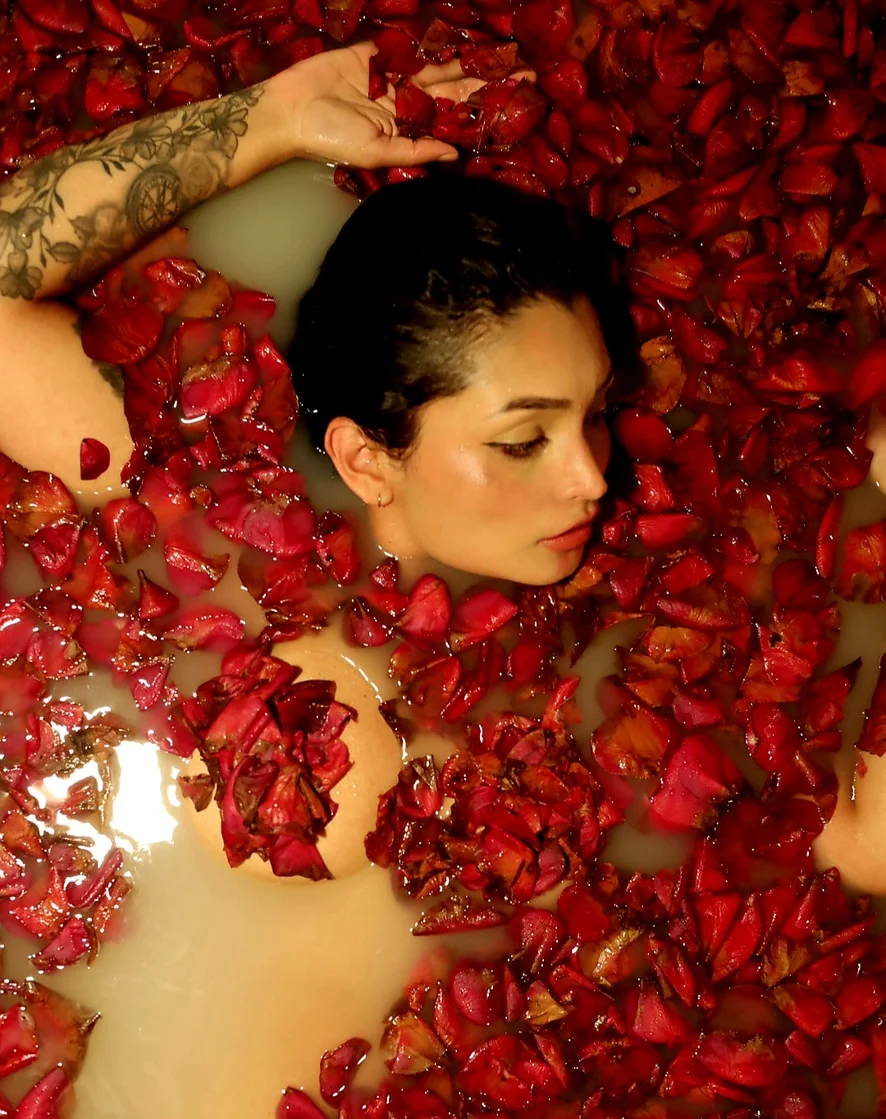 I was submerged between petals and desire... letting myself be carried away by every sensation, by every look you imagine on my wet skin.